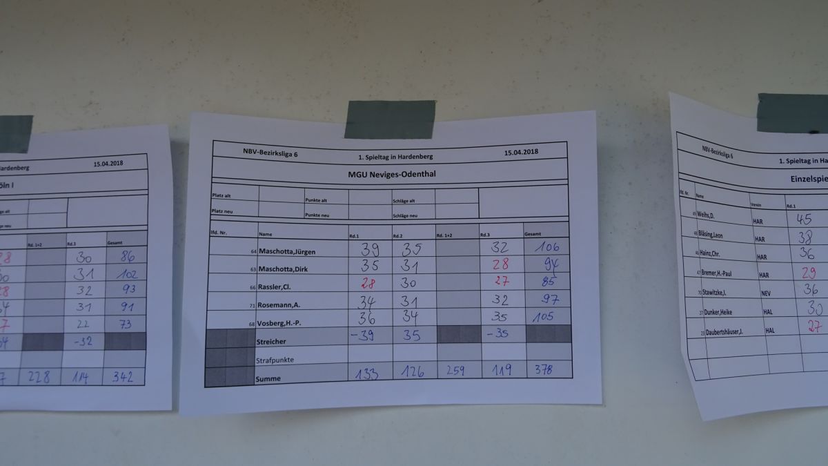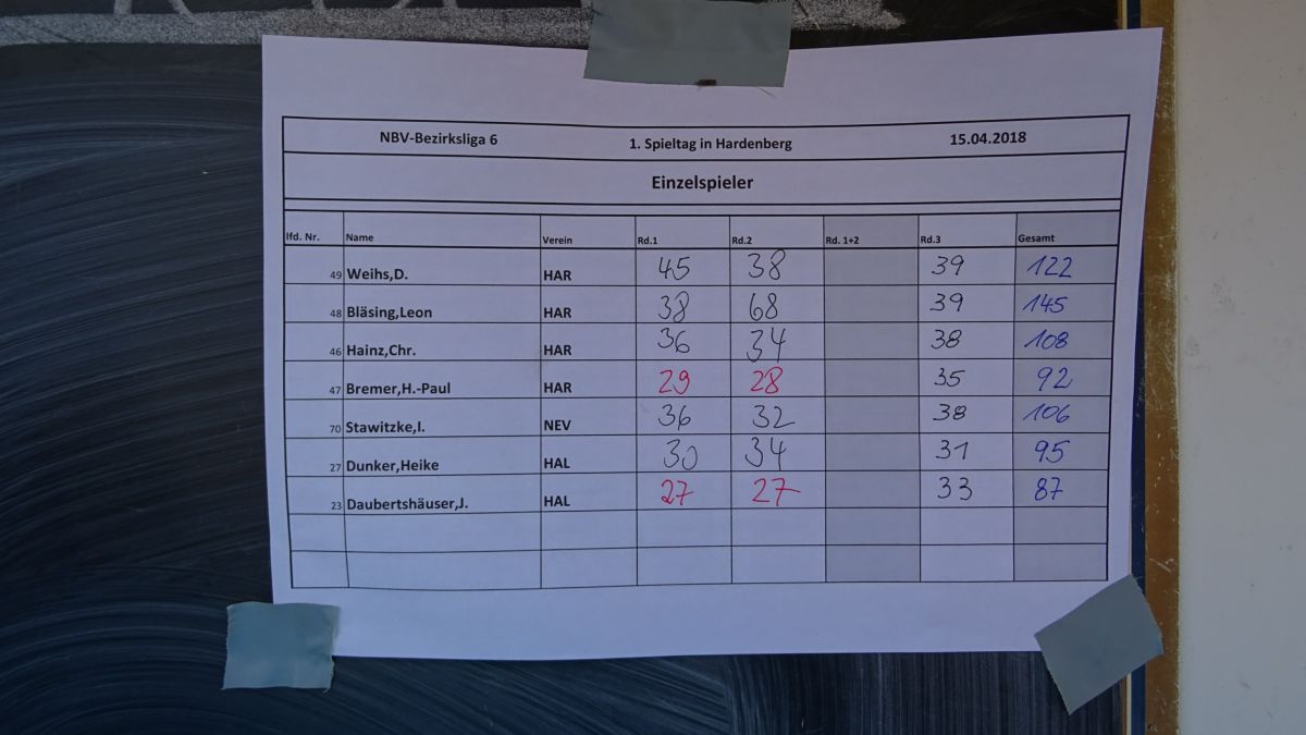 1. Meisterschaftsturnier in Hardenberg am 15.04.2018